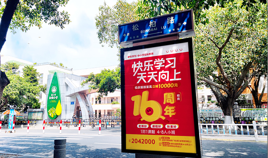 快樂學(xué)習(xí)全城多個黃金路段投放,覆蓋廈門各大中小學(xué)周邊路段及交叉口,定位精準(zhǔn)人群,點對點投放。