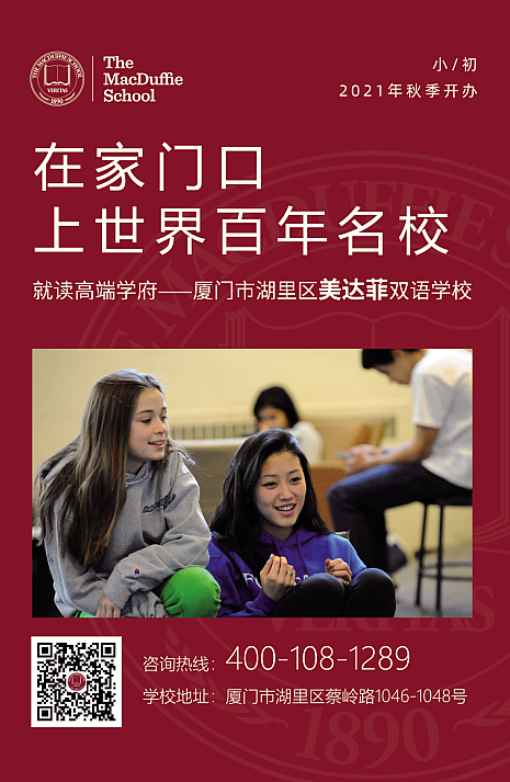 2021年秋季開學(xué),屆時(shí)將為廈門學(xué)子帶來純正雙語教學(xué)服務(wù),來自全球教育界有名望、教學(xué)經(jīng)驗(yàn)豐富的師資隊(duì)伍和小班精品化教育模式。